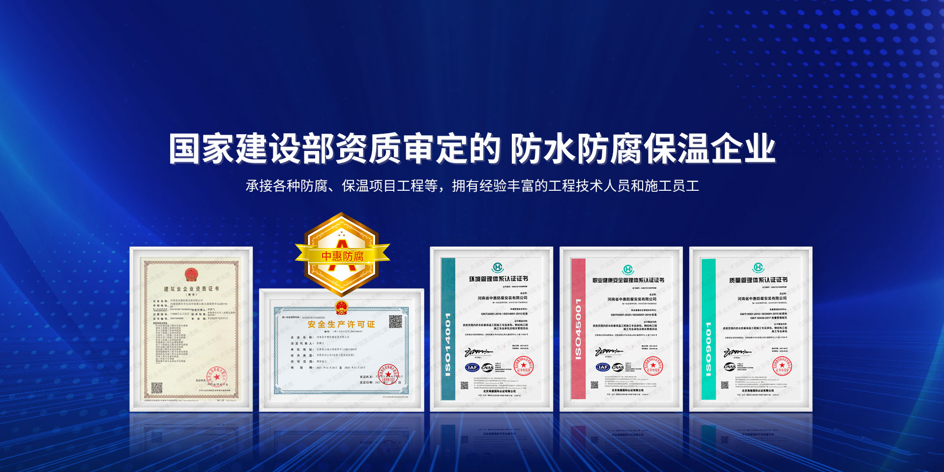 公司經營范圍:防水防腐保溫工程;消防設施工程;建筑裝修裝飾工程;建筑機電安裝工程;電力工程;建筑工程;石油化工工程;工業清洗工程;油罐清洗工程;鋼結構工程;環保工程;模板腳手架工程;電纜防火封堵、防污閃噴涂、外墻外保溫工程;各類施工勞務作業;設備維修、船舶鉚焊、涂裝;電力工程材料、建材、防水材料、防火材料、防腐保溫材料銷售,并相繼通過了GB/T19001-2008idtISO9001:2008GB/T50430-2007質量管理體系認證證書。GB/T24001-2004idtISO14001:2004環境管理體系認證證書。GB/T28001-2011idtOHSAS18001:2007職業健康安全管理體系認證證書。公司是中國防腐蝕于防護協會、中國施工企業管理協會、電力協會和中國鋼結構防水協會會員單位。 公司的經營業務涵蓋了石油、化工、電力、冶金、煤炭、船舶、國防、燃氣、水利、環保、交通運輸、航空及國防軍工和輕紡市政等行業的防腐保溫絕熱設備。鋼結構安裝、防火、防水、金屬噴鍍、聚脲噴繪、陰極保護、防滲透堵漏、玻璃鋼及各種磚版材料襯里、橡膠襯里、煙氣硫和耐酸溶劑腐蝕等工程施工。公司連續十年榮獲“省市先進施工企業”“安全生產先進單位”“重合同,守信用企業”和“AA***資質企業”的稱號。2000年被命名為市級文明單位,2002年被國家工商行政管理局命名為“重合同,守信用的企業”、被中國工業防腐蝕技術協會命名為“防腐蝕企業,能源節約及環境保護領域有豐富的經驗和***的業績。工程一次交驗合格率100%。其中攀枝花鋼鐵公司煉鐵廠四號高爐及熱風爐防腐工程、上海寶鋼公司煤氣柜防腐工程、撫順石油一廠裝置防腐項目、齊魯石化公司稀烴廠高塔防腐工程、吉林化學工業公司煉油廠油罐防腐工程、天津石化熱電廠六號爐頂棚聯絡管保溫工程、大慶油田(太倉)力神泵業工程、中國化學工程第十一建設工程、中原油田勘探局工程、中國石化銷售有限公司華北分部、魯皖輸油管道工程、貴州開磷息烽合成氨工程、陜西黃陵煤化工程、中國石油天然氣西部管道塔里木輸油工程、邯鋼集團邯寶鋼鐵公司煉鐵工程、德州供電工程、吉寶(南通)船廠工程,偃師華潤熱力工程、鄭州熱力總公司。 河南省中惠防腐安裝有限公司愿以豐富的施工經驗,***的技術,***的設備,***的管理,***的服務,竭誠為國內外廣大的用戶提供***滿意、******的工程作品。 我公司愿與國內外同仁一道,團結協作,共同推進防腐蝕行業發展! 公司地址:河南省長垣縣建設路北段360號 固定電話:0373-8866488 郵編:453400 網址:http://www_zhff_com_cn.beijing-eo.com